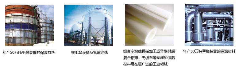 Greencos綠寰宇牌三聚氰胺泡沫系列產品、聚酰亞胺特種泡沫具有卓越的吸聲性、阻燃性、隔熱性、耐濕熱穩定性、衛生安全性及良好的二次加工性等綜合性能。這些特性使該產品廣泛應用于建筑業、工業、車輛制造、工廠建設、熱力工程、設備裝置、空調系統、航天航空航海領域、電子產品、日用清潔等領域。Greencos綠寰宇泡沫是一種以三聚氰胺為原料制造的可彎曲的柔性的開放式泡沫,是氨基塑料族中的一種熱固樹脂塑料。其特點體現在其精細的三維絲網結構。